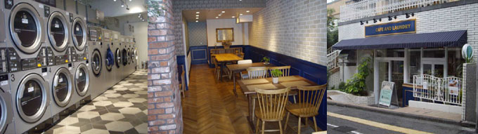 23区内、コインランドリーとカフェが一緒になった、新しいタイプのお洒落なお店です。